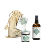 Containing 1 x Sleep Balm 60ml, 1 x Soothe Body Oil 100ml – in an organic cotton drawstring bag.